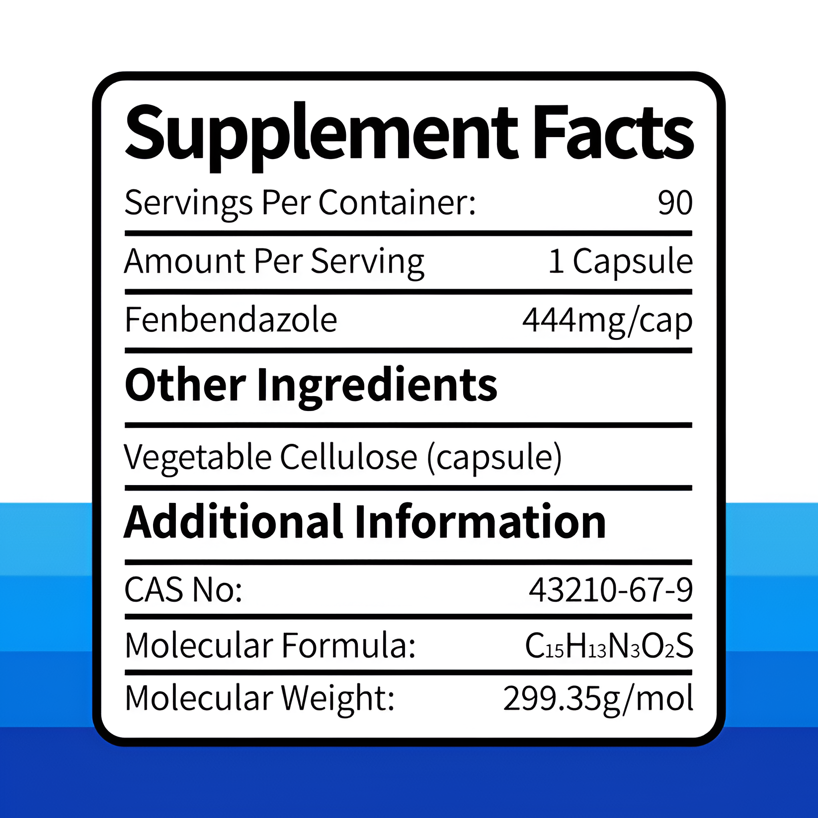 Each capsule contains 444mg of Fenbendazole. Simply take as directed on the label, preferably with water and with or after a meal for easier digestion.